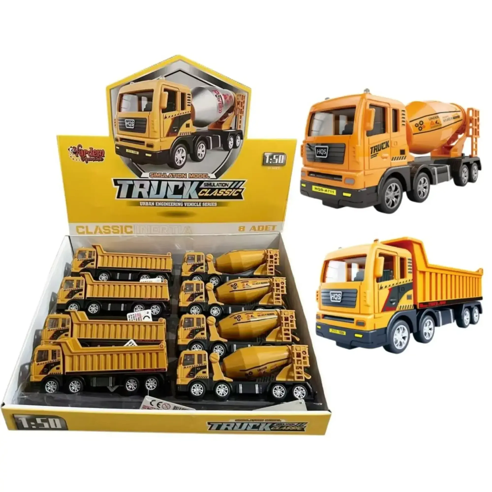 Vardem Sürtmeli Sarı Beton Mikseri ve Hafriyat Kamyonu 1:50