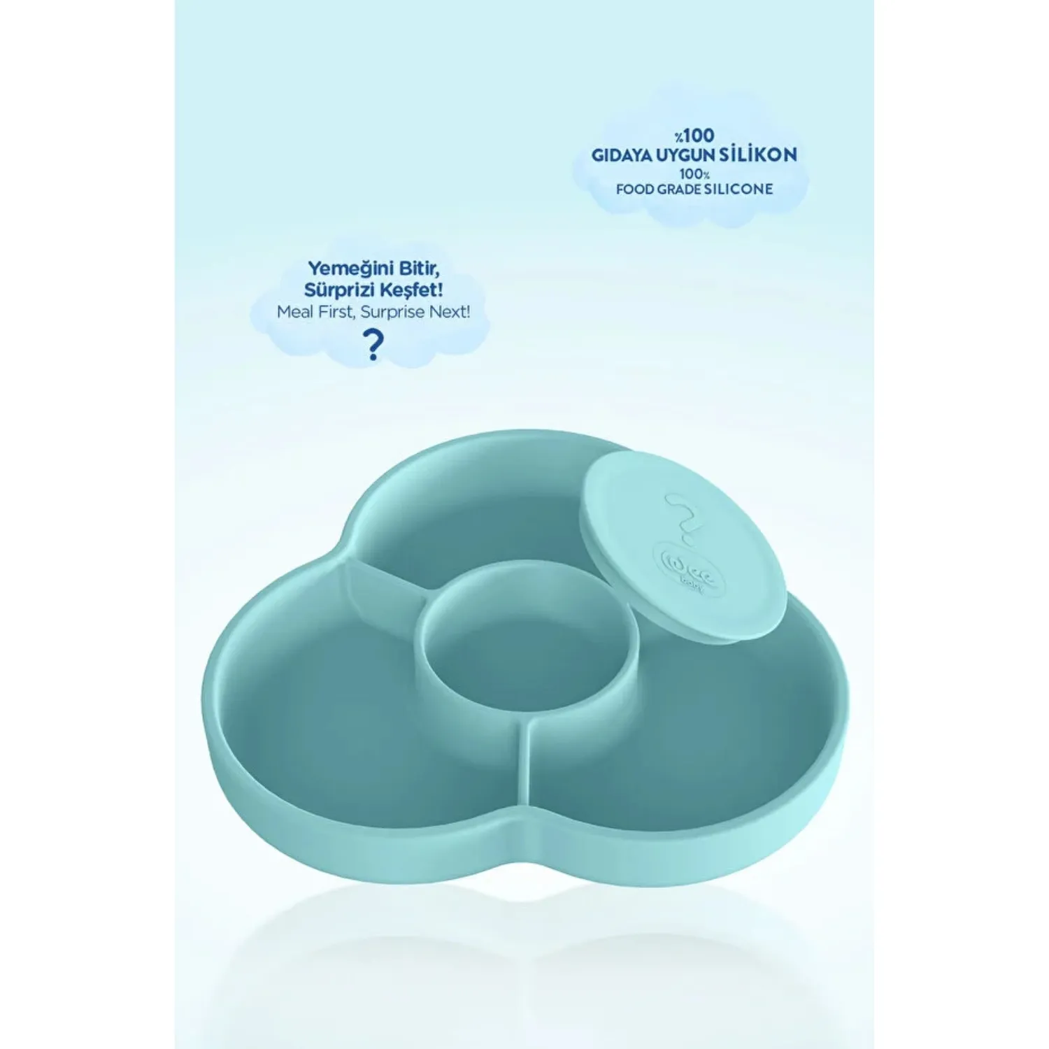 - Ortasındaki sürpriz bölme ile bebeğinizin beslenme zamanını eğlenceli hale getirir.